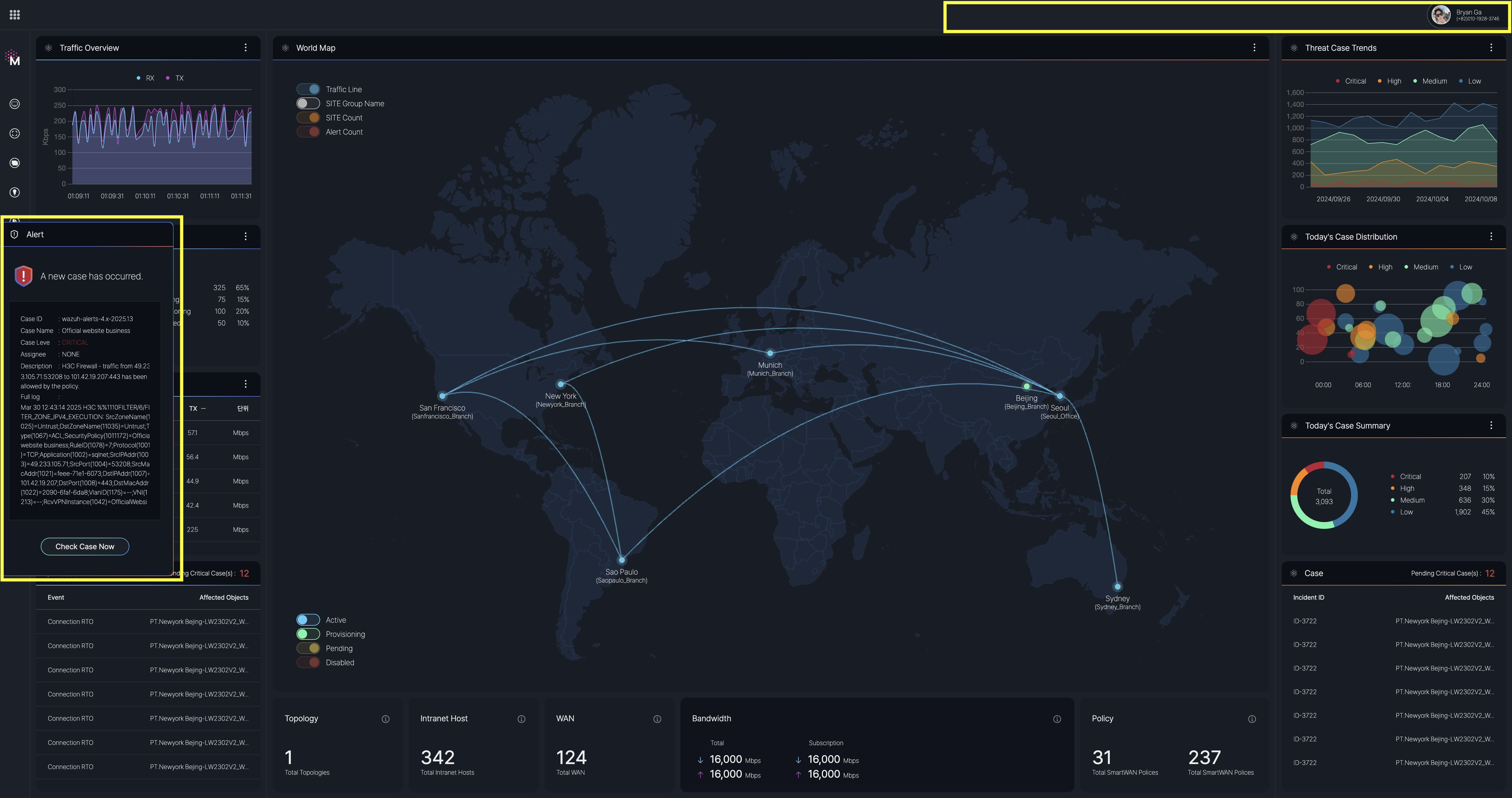 If any alerts need to be provided to the user, an alert message will be displayed on the left side of the screen in real time.