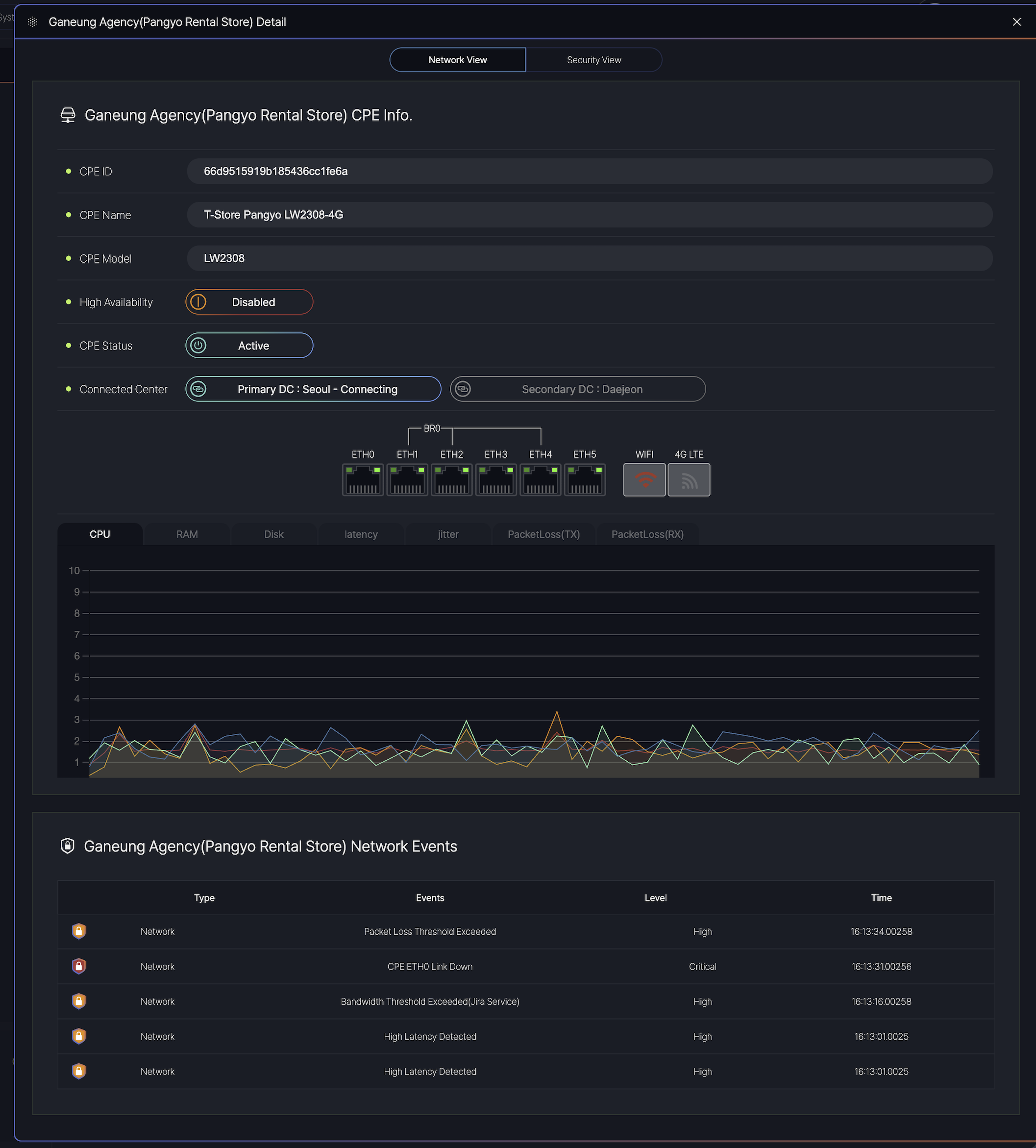 Currently, the dashboards are configured for the monitoring purposes of SKT’s agency SmartWAN system.