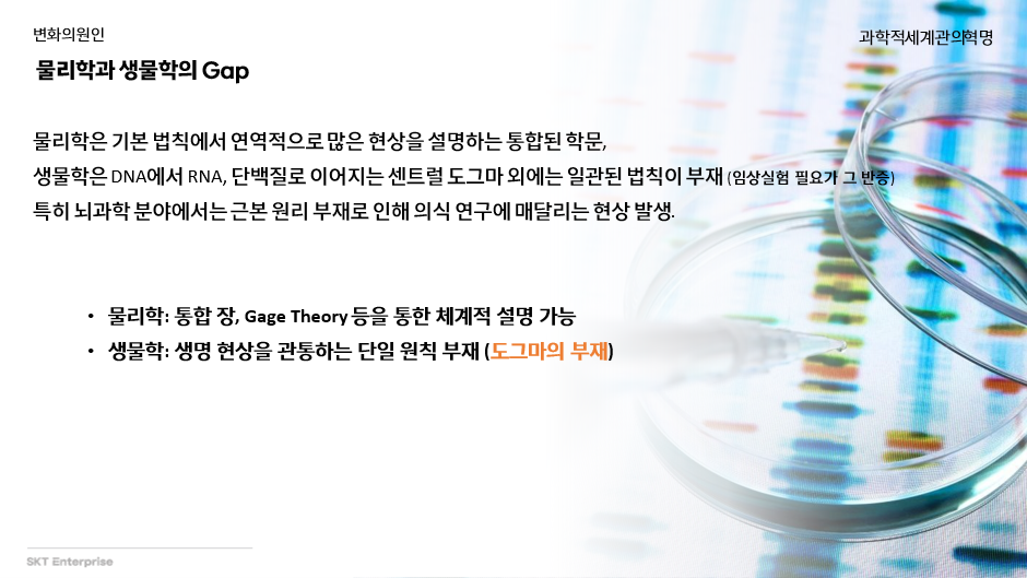 이 차이 때문에 물리학은 이론으로 먼저 예측하고 확인하는 경우가 많지만, 생물학은 실험에 많이 의존해야 하는 한계가 있습니다. 특히 뇌과학이나 의식 연구처럼 복잡한 분야는 이 “간극(Gap)”이 더 크게 느껴집니다.