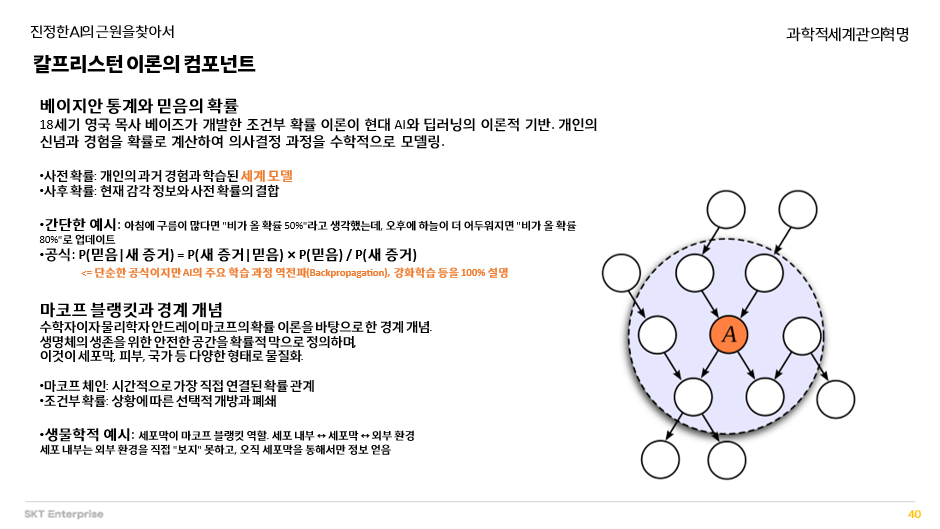 이 성공의 핵심은 베이지안 통계, 즉 '믿음의 통계'입니다. 18세기 영국의 베이즈 목사가 개발한 이론이 100년 후 재발견되어 현재 4차 산업혁명의 기반이 되었습니다. 베이지안 통계는 개인의 과거 경험(사전 확률)과 현재 감각 정보를 결합하여 예측을 만드는 조건부 확률 체계입니다.