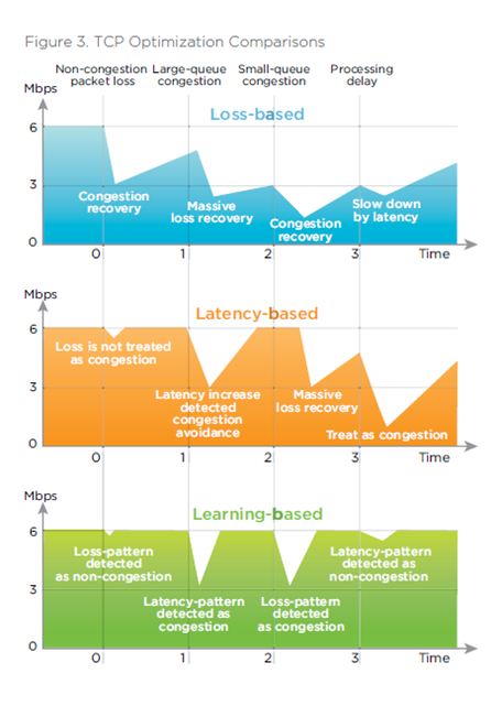 기존 손실 기반 최적화는 일부 개선을 제공하지만, 여전히 손실에 의해 속도가 지배되기 때문에 높은 전송 속도와 안정적 처리량은 기대하기 어렵습니다.